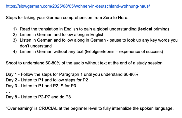 My first tutor recommended this app that helps me learn German via context. It’s basically fill-in-the-gap sentence work. I can do it for free every day. It teaches me in context. I’m 40 days in, and the more I do it, the more familiar the language becomes. I’m not trying to memorize everything right now. It’s too early. I’m just ingesting the language and letting it surround my life.