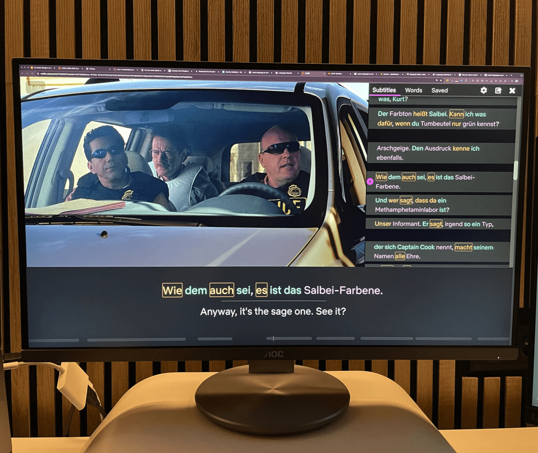 Right now I watch Breaking Bad in German with German subtitles. With the extension, I tag words I know and words I don’t, then do quick rounds to check recall using the Phrase Pump feature.